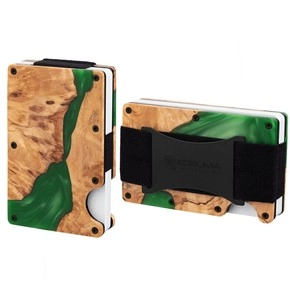 Aluminiumhülle mit Gummiband für RFID-Karten (Holz + grünes Harz)