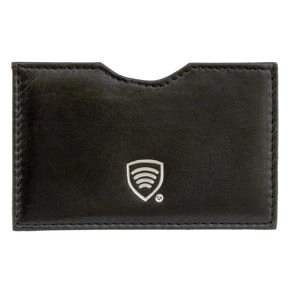 Lederetui für Zahlungskarten mit RFID-Blockierung und silbernem Logo (Schwarz)