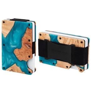 Aluminiumhülle mit Gummiband für RFID-Karten (Holz + türkisfarbenes Harz)