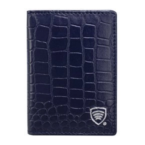 Dünne Leder-RFID-Brieftasche für Jackenregistrierung (Marineblau, Kroko)