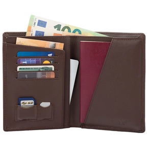 Reisebrieftasche aus Leder für Proximity-Karten und biometrischen Reisepass (braun)