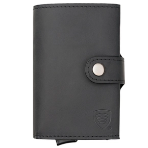 Aluminiowe etui z wysuwanymi kartami i ochroną kart zbliżeniowych (czarny)