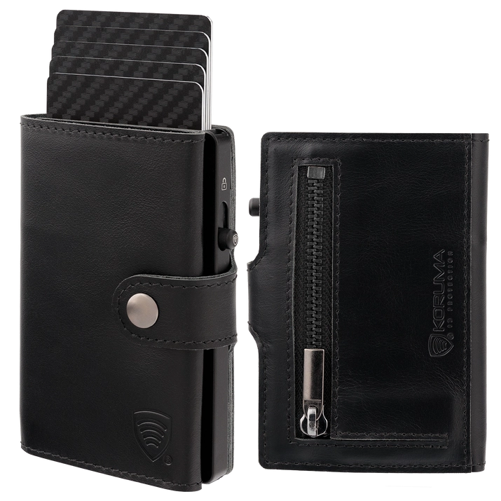Aluminium-Portemonnaie mit Kartenschlitten und Kartenschutz (schwarz)