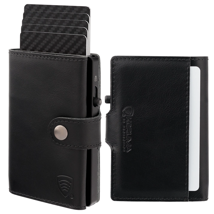 Aluminium-Portemonnaie mit Kartenschlitten und Kartenschutz (schwarz)