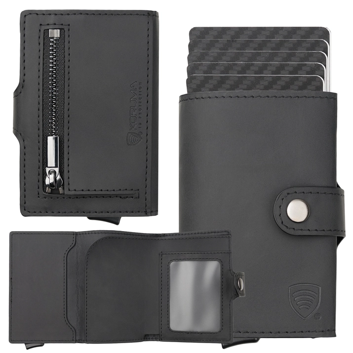 Aluminium-Portemonnaie mit Kartenschlitten und Kartenschutz (schwarz)