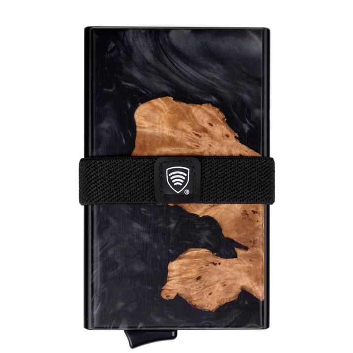 Brieftasche aus Aluminium mit Kartenschlitten und Kartenschutz (Holz + schwarzes Harz)