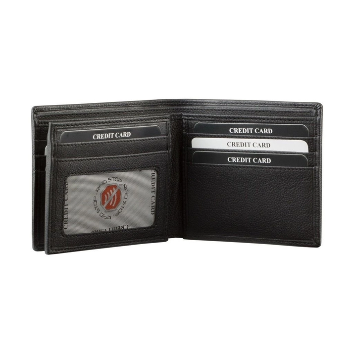 RFID STOP™ - eine Technologie, die kontaktlose Karten schützt, selbst wenn die Brieftasche geöffnet wird.