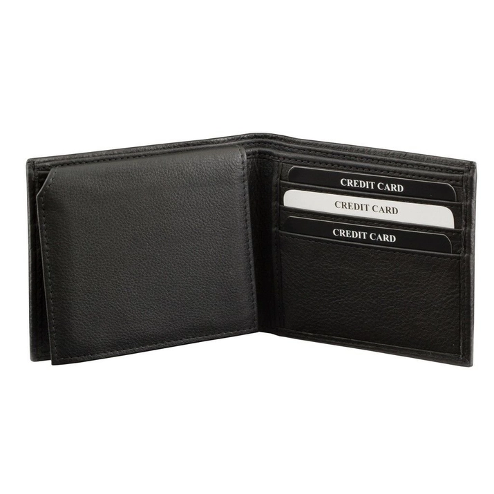 Schwarzes Portemonnaie mit integrierter RFID STOP™-Technologie zum wirksamen Schutz Ihrer Proximity-Karten.