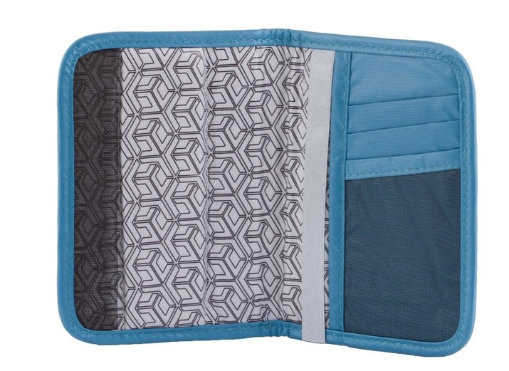 Brieftasche für Karten und Reisepass. Hergestellt aus Polyester. Integrierte Sicherheit für Proximity-Karten und biometrische Pässe.