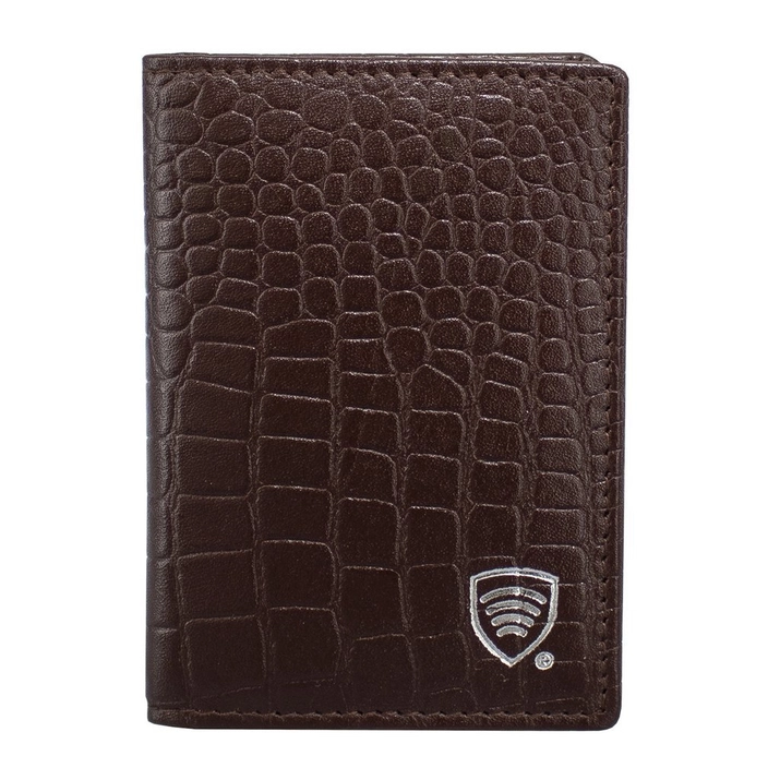 Kleine Ledergeldbörse für RFID-Kreditkarten (Braun, Kroko)