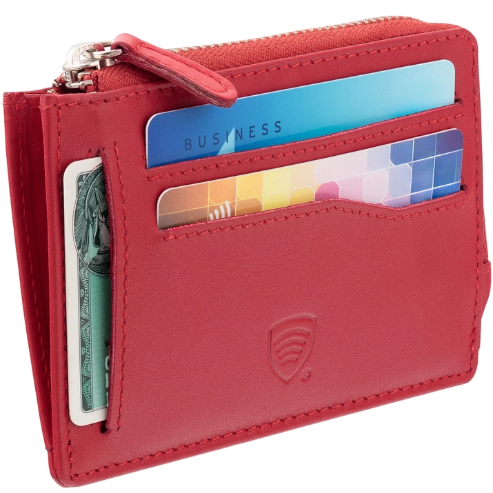 Kleines Damen-Kartenetui aus Leder mit Reißverschluss (Rot)