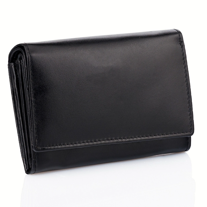 ✓ QUALITÄT UND ELEGANZ - Damen Portemonnaie aus natürlichem glattem Oberleder in schwarz.