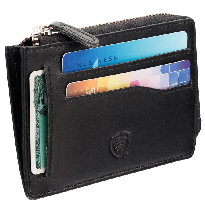 RFID STOP™ - eine Technologie, die kontaktlose Karten schützt, selbst wenn die Brieftasche geöffnet wird.