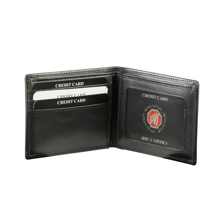 RFID STOP™ - eine Technologie, die kontaktlose Karten schützt, selbst wenn die Brieftasche geöffnet wird.