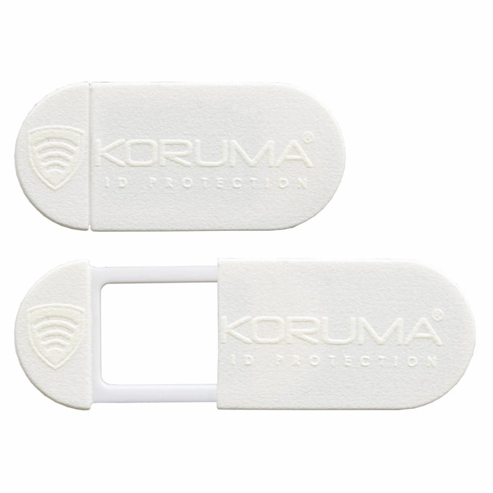 Achten Sie auf Ihre Privatsphäre und Sicherheit. Lassen Sie nicht zu, dass Hacker Ihre integrierte Webcam nutzen, um Sie und Ihre Umgebung zu beobachten. Verwenden Sie die mobile Webcam-Kappe auf Ihrem Laptop oder Tablet. Weiße Farbe mit Koruma®-Logo.